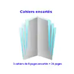 Après pliure les cahiers peuvent être encartés pour une piqure à cheval sur le pli avec du fil métallique agrafé (brochure, hebdomadaire).