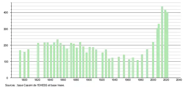 - Fiches Insee - Populations légales de la commune pour les années 2006, 2007, 2008, 2009, 2010, 2011, 2012, 2013, 2014, 2015, 2016, 2017, 2018, 2019, 2020 et 2021.