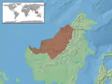 Aire de répartition de l'espèce Calamaria borneensis selon l'UICN (consulté le ).