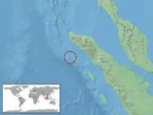 Cette espèce est endémique de l'île Koko dans l'archipel de Simeulue en Indonésie[1].