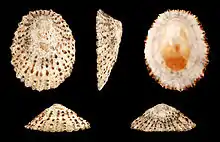 Les foraminifères sont des protistes unicellulaires à coquilles ou coques constituées de carbonate de calcium. Ces organismes sont l'un des groupes les plus abondants d'organismes à coques, mais ils sont très petits, généralement entre 0,05 et 0,5 mm de diamètre[13]. Cependant, leurs coquilles sont divisées en chambres qui s'accumulent au cours de la croissance, permettant dans certains cas à ces organismes unicellulaires d'atteindre près de 20 centimètres de long. La classification des foraminifères dépend des caractéristiques de la coquille, telles que la forme et la disposition des chambres, l'ornementation de la surface, la composition des parois et d'autres caractéristiques[14].