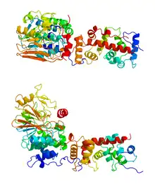 La calcineurine est un hétérodimère composé d'une sous-unité A (calcineurine A) de 58-64 kDa et d'une sous-unité B (calcineurine B) de 19 kDa[2].