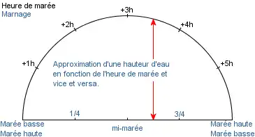 Ainsi, la variation relative du niveau des eaux est approximativement de 1/12 du marnage durant la première heure-marée, 2/12 durant la seconde, puis 3/12, 3/12, 2/12, 1/12.