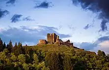 Le château de Calmont d'Olt est un château fort français situé à Espalion, dans le département de l'Aveyron. Perché sur un dyke basaltique à 535 mètres d'altitude, il surplombe de 200 mètres la ville d'Espalion et la vallée du Lot, offrant une vue panoramique sur les monts d'Aubrac.