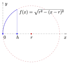Si on considère que le segment sphérique est engendré par la rotation du triangle curviligne O(0;0) H(h,0) M(h, f(h)), on peut utiliser le calcul de volume d'un solide de révolution: