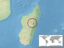 Aire de répartition de l'espèce Calumma globifer selon l'UICN (consulté le ).