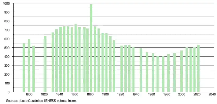 - Fiches Insee - Populations légales de la commune pour les années 2006, 2007, 2008, 2009, 2010, 2011, 2012, 2013, 2014, 2015, 2016, 2017, 2018, 2019, 2020 et 2021.