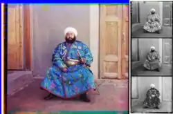 Cette étrange répartition dédoublée ou triplée s’explique par la partie optique de la caméra. L’image produite par son objectif traverse un bloc constitué de deux prismes de haute qualité, collés sur l’une de leurs faces. Cet assemblage est complété sur ces deux faces collées par une couche très fine d’or pur (plus tard, l’argent sera utilisé à sa place). L’image, en pénétrant dans ce bloc, d’une part le traverse et d’autre part est déviée à 90° par la couche d'or qui fait office de miroir semi-réfléchissant. Le premier flux, qui va tout droit, et selon la même quantité, traverse un filtre vert qui ne laisse passer que les composantes vertes de l’image qui vont impressionner la première pellicule noir et blanc. Le second flux, dévié à 90°, « traverse un filtre de couleur violette et laisse donc passer les rayons rouges et bleus. Or derrière la fenêtre passent deux films accolés de telle sorte que leurs émulsions se touchent : le premier film possède une émulsion sensible uniquement au bleu et colorée dans sa masse de façon à absorber ces rayons bleus et à ne laisser arriver sur l'émulsion panchromatique du film que les rayons rouges. Nous avons donc enregistré par ce moyen trois films sur lesquels se trouvent les images élémentaires vertes, bleues et rouges[3]. »