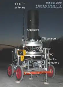 - Caméra numérique: focale de 10–50 cm et capteur CCD à la place de la plaque photographique. Du fait du temps d'exposition plus court, il n'est pas nécessaire de placer l'axe de rotation avec autant de précision qu'avec un appareil photographique. Ces caméras sont donc plus petites et plus faciles à transporter.