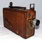 Ciné-Kodak K, avec ouverture du compartiment du film vierge (étanche à la lumière une fois refermé).