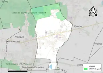 Le territoire communal comprend une ZNIEFF de type 1[Note 1] : le marais de Beuvry, Cuinchy et Festubert. Cet ensemble de marais se situe dans le bassin versant de la Lys en limite nord/ouest du bassin minier du Pas-de-Calais qui est une zone très industrialisée et peuplée dans laquelle peu de milieux naturels subsistent[16].