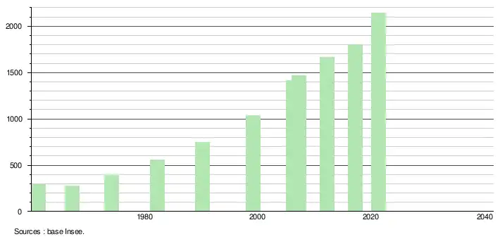 L'évolution du nombre d'habitants est connue à travers les recensements de la population effectués dans la commune depuis 1961, premier recensement postérieur à la départementalisation de 1946. À partir de 2006, les populations légales des communes sont publiées annuellement par l'Insee. Le recensement repose désormais sur une collecte d'information annuelle, concernant successivement tous les territoires communaux au cours d'une période de cinq ans. Pour les communes de moins de 10 000 habitants, une enquête de recensement portant sur toute la population est réalisée tous les cinq ans, les populations légales des années intermédiaires étant quant à elles estimées par interpolation ou extrapolation[16]. Pour la commune, le premier recensement exhaustif entrant dans le cadre du nouveau dispositif a été réalisé en 2007[17].