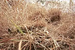 Un criquet du genre Goniaea, se confondant avec les feuilles mortes
