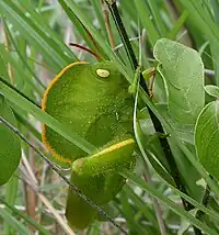 Insecte ressemblant à une feuille verte.