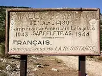 Une centaine de maquisards ont évolué dans le secteur du Malay, y formant le camp Lafayette (SAP), et furent surtout actifs lors du débarquement de Provence, lors des parachutages nocturnes qui portaient les noms de code suivants[8],[9],[10] :