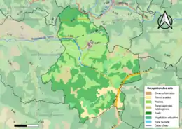 L'occupation des sols de la commune, telle qu'elle ressort de la base de données européenne d’occupation biophysique des sols Corine Land Cover (CLC), est marquée par l'importance des territoires agricoles (52,7 % en 2018), en augmentation par rapport à 1990 (46,1 %). La répartition détaillée en 2018 est la suivante : prairies (41,2 %), forêts (40,3 %), terres arables (5,9 %), zones agricoles hétérogènes (5,6 %), milieux à végétation arbustive et/ou herbacée (4,7 %), zones urbanisées (1,7 %), mines, décharges et chantiers (0,6 %)[25].