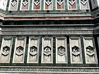 Les bas-reliefs hexagonaux en bas et en losange au niveau supérieur dont l'attribution entre Andrea Pisano, Luca della Robbia et Giotto reste encore difficile :