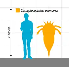 L'espèce C. permianus, découverte en Russie dans des dépôts du Permien supérieur, est la seule espèce de Campylocephalus suffisamment bien conservée pour permettre une estimation de sa taille, que plusieurs publications estiment à 1,4 mètre de long. C'est l'une des dernières espèces d'Euryptérides vivantes connues : elle s'est éteinte juste avant ou pendant l'extinction du Permien-Trias, il y a 251,9 millions d'années. Avant cette extinction massive, les Euryptérides ont connu un déclin progressif durant des millions d'années, tant en nombres et qu'en diversité : ainsi, Campylocephalus est le seul genre connu d'Euryptérides à avoir vécu au cours des plus de 20 millions d'années qui ont suivi l'extinction du genre apparenté Hastimima.