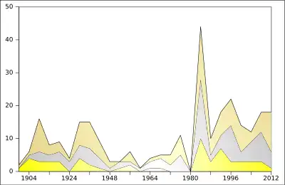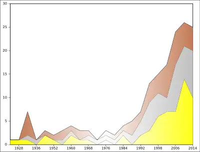 | Jeux olympiques d'hiver de 1988 | Calgary | 13 au 28 février | 57 | 1423 | 46 |