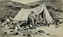 Une tente canadienne, ou plus simplement canadienne, est un type de tente à ouverture triangulaire, en forme de toit à deux pentes. La tente canadienne ne comporte pas d'armature. Elle est dressée grâce à deux mats verticaux, souvent en aluminium pour plus de légèreté[1]. Les versants du toit peuvent descendre jusqu'au sol ou il peut y avoir des murs verticaux sur une hauteur de 25 à 40 cm[2]. Des tendeurs, avec des piquets fichés en terre, permettent de maintenir les mats et le bord inférieur des versants du toit.