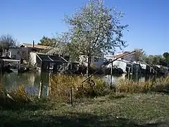 Un kilomètre plus au sud il est possible de franchir le Pont du Lièvre et d’avoir un assez bel exemple de maisons camarguaises ou Cabane de gardian en continuant jusqu’au bout vers le sud.