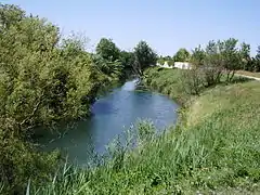 Il traverse une zone plate et marécageuse appelée la Palus située à l’ouest du Vidourle et dans laquelle s’est développé l’élevage de taureaux et de chevaux de Camargue. La région est d’ailleurs parsemée de mas et de manades entre lesquels s’étendent de vastes étendues de près salés (enganes), de champs de culture, de roselières, de sansouïres et d'étangs.
