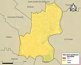 Le retrait-gonflement des sols argileux est susceptible d'engendrer des dommages importants aux bâtiments en cas d’alternance de périodes de sécheresse et de pluie. La totalité de la commune est en aléa moyen ou fort (59,3 % au niveau départemental et 48,5 % au niveau national). Sur les 1 427 bâtiments dénombrés sur la commune en 2019, 1 427 sont en aléa moyen ou fort, soit 100 %, à comparer aux 85 % au niveau départemental et 54 % au niveau national. Une cartographie de l'exposition du territoire national au retrait gonflement des sols argileux est disponible sur le site du BRGM[21],[Carte 2].