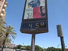 Écran à cristaux liquides affichant 45 °C à Valence (Espagne), le .