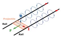 Le concept consiste à établir une différence de potentiel électrique entre deux rails parallèles conducteurs de l'électricité et à insérer entre eux un projectile conducteur pouvant glisser ou rouler dessus, en faisant contact. Dès que le contact a lieu, un courant électrique circule entre les deux rails, un champ magnétique naît et le projectile est accéléré par la force de Laplace (interaction entre le courant qui circule dans le projectile et le champ magnétique créé).