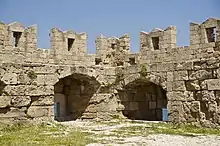 Trois canonnières du château de Coatfrec, avec leurs niches dotées d'un abri pour le tireur.