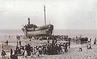 Le , à trois heures du matin, le Cantabria s’échoue[2] à quelques dizaines de mètres de la plage de l’Alexandre, quelques kilomètres au nord du village de Lacanau sur la côte du Médoc. La population se porte au secours des 497 passagers. On dénombre « 178 combattants, 193 femmes et 126 enfants »[3].