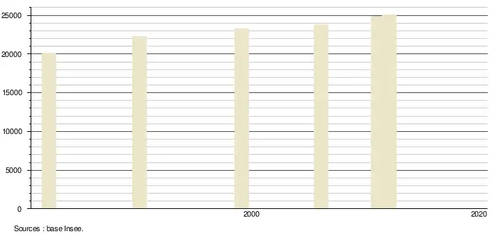 - Population municipale légale en vigueur au 1er janvier 2024, millésimée 2021, définie dans les limites territoriales en vigueur au 1er janvier 2023, date de référence statistique : 1er janvier 2021.