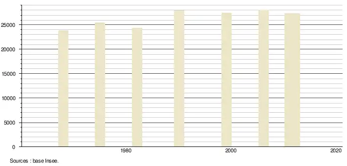 - Population municipale légale en vigueur au 1er janvier 2024, millésimée 2021, définie dans les limites territoriales en vigueur au 1er janvier 2023, date de référence statistique : 1er janvier 2021.