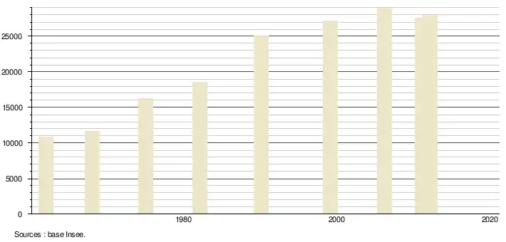 - Population municipale légale en vigueur au 1er janvier 2024, millésimée 2021, définie dans les limites territoriales en vigueur au 1er janvier 2023, date de référence statistique : 1er janvier 2021.