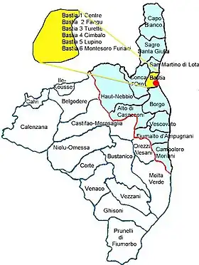 Lors de sa création, le canton de Bastia-V (Lupino) comprenait[1] :