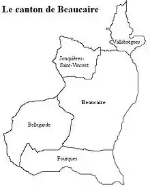 Situation du canton de Beaucaire dans le département du Gard. | |