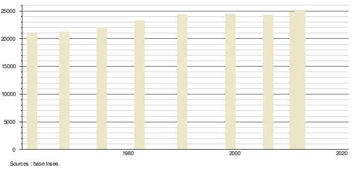 - Population municipale légale en vigueur au 1er janvier 2024, millésimée 2021, définie dans les limites territoriales en vigueur au 1er janvier 2023, date de référence statistique : 1er janvier 2021.