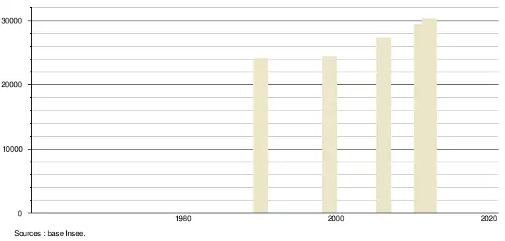 - Population municipale légale en vigueur au 1er janvier 2024, millésimée 2021, définie dans les limites territoriales en vigueur au 1er janvier 2023, date de référence statistique : 1er janvier 2021.