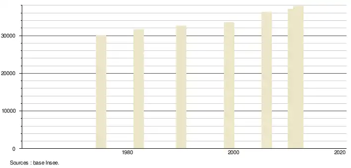 - Population municipale légale en vigueur au 1er janvier 2024, millésimée 2021, définie dans les limites territoriales en vigueur au 1er janvier 2023, date de référence statistique : 1er janvier 2021.