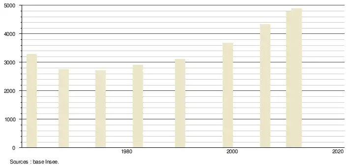 - Population municipale légale en vigueur au 1er janvier 2024, millésimée 2021, définie dans les limites territoriales en vigueur au 1er janvier 2023, date de référence statistique : 1er janvier 2021.