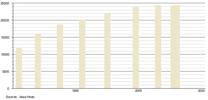 - Population municipale légale en vigueur au 1er janvier 2024, millésimée 2021, définie dans les limites territoriales en vigueur au 1er janvier 2023, date de référence statistique : 1er janvier 2021.