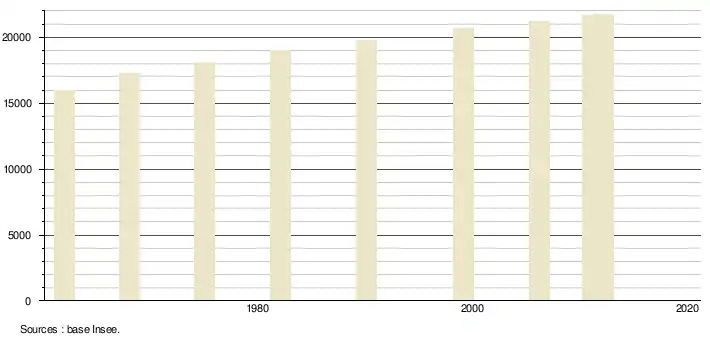 - Population municipale légale en vigueur au 1er janvier 2024, millésimée 2021, définie dans les limites territoriales en vigueur au 1er janvier 2023, date de référence statistique : 1er janvier 2021.