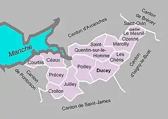Contrairement à beaucoup d'autres cantons, le canton de Ducey n'incluait aucune commune définitivement supprimée depuis la création des communes sous la Révolution[7].