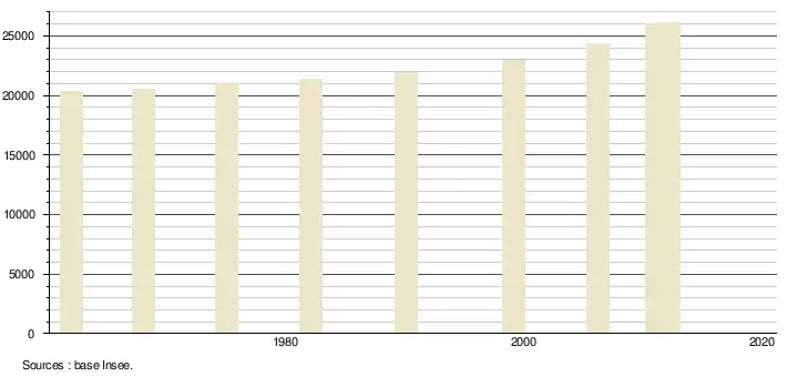 - Population municipale légale en vigueur au 1er janvier 2024, millésimée 2021, définie dans les limites territoriales en vigueur au 1er janvier 2023, date de référence statistique : 1er janvier 2021.