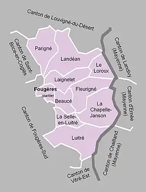 À la suite du redécoupage des cantons pour 2015, le territoire de Fougères est partagé entre les cantons de Fougères-1 et Fougères-2 et les autres communes sont rattachées au canton de Fougères-2.