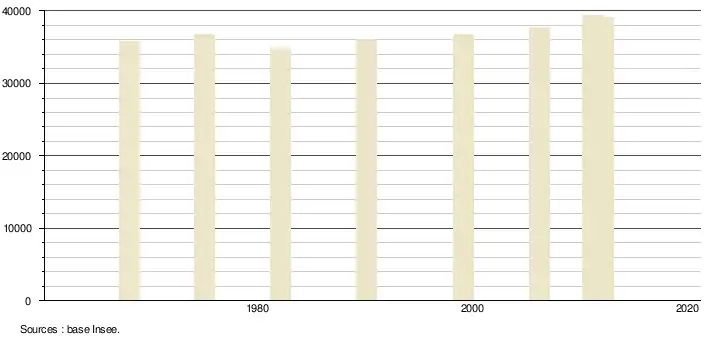 - Population municipale légale en vigueur au 1er janvier 2024, millésimée 2021, définie dans les limites territoriales en vigueur au 1er janvier 2023, date de référence statistique : 1er janvier 2021.