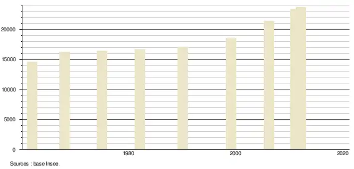- Population municipale légale en vigueur au 1er janvier 2024, millésimée 2021, définie dans les limites territoriales en vigueur au 1er janvier 2023, date de référence statistique : 1er janvier 2021.
