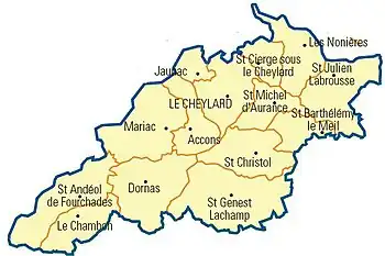 Liste des 44 communes du canton de Haut-Eyrieux au