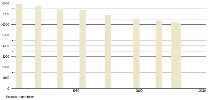 (Sources : Base Insee, population sans doubles comptes à partir de 1962[22] puis population municipale à partir de 2006[23])