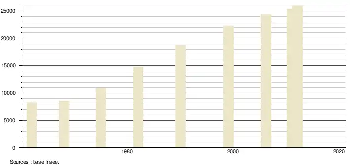 - Population municipale légale en vigueur au 1er janvier 2024, millésimée 2021, définie dans les limites territoriales en vigueur au 1er janvier 2023, date de référence statistique : 1er janvier 2021.